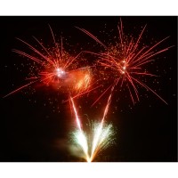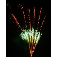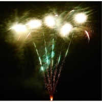 Variantenreiches Verbundfeuerwerk mit 4 Batterien und 124 Schuss; Phase 1: Grün glitzernde Feuertöpfe mit goldenen oder roten Blinkkometen, gefolgt von knisternden Chrysanthemen- Salven; Phase 2: Crackling-Aufstieg goldener Palmen mit Silberspitzen, gefolgt von Dragon- Egg-Effekten mit grün oder rot fallenden "Leaves-Effekten" und anschließenden, gegabelten Feuertöpfen mit Popping-Chrysanthemen; Phase 3: Grün oder rot aufsteigende Leuchtsterne mit anschließender Verwandlung zu Silberchrysanthemen mit lang ziehenden Kometen, gefolgt von mächtigen Crackling-Fächern; Phase 4: Rasanter Abschluss aus 24 "Chaos-Kometen", endend in 2 Salven mit lang ziehenden Knattersternen mit roten Blinkern.