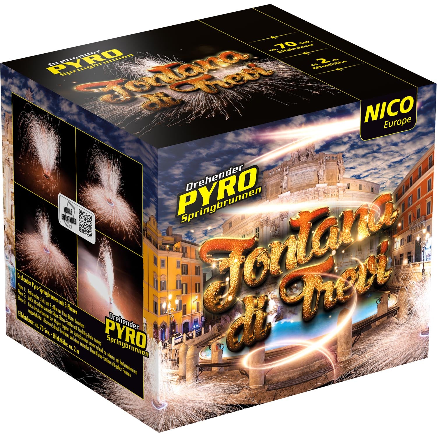 La dolce vita trifft auf pure Feuerwerkskunst! Mit der FONTANA DI TREVI entdecken Sie einen Hauch italienischer Eleganz – ein wahres Kunstwerk aus Feuer und Bewegung! Der wunderschöne, sich drehende Springbrunnen mit 8 Brändern.