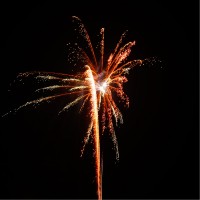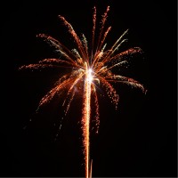 24 Schuss Palmenbatterie, mit breitem, farbigem Glitzerschweif aufsteigende Lanzen mit anschließender lautstarker Verwandlung zu lang stehenden rot, grün oder gelb glitzernden Palmen-Effekten.