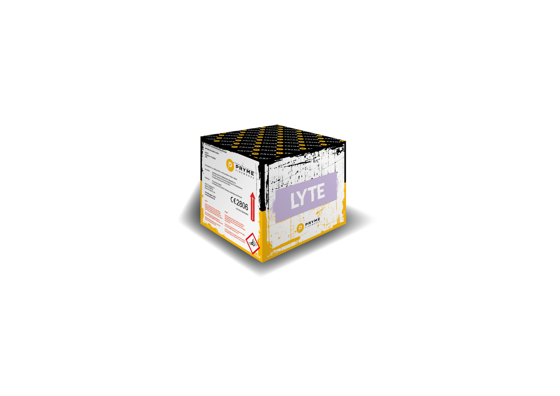 Kompakte Feuerwerksbatterie mit 30 Schuss und Kaliber 25–30 mm. Die Lyte überzeugt durch eine abwechslungsreiche Kombination aus geraden und gefächerten Abschüssen mit kräftigen Farben und goldenen Effekten. Zu sehen sind unter anderem blaue, rote, violette und grüne Sterne, kombiniert mit glitzernden Weiden und dem markanten „Golden Dragon“-Effekt. Mit einer Brenndauer von etwa 40 Sekunden und einer Steighöhe von rund 45 Metern eignet sie sich für eindrucksvolle Feuerwerksbilder im mittleren Effektsegment.