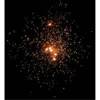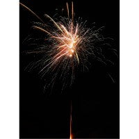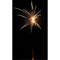 36 Schuss, in schneller Abfolge zündend, mit lautstark zerlegenden Effektbuketts mit unzähligen roten Sternen mit Silber-Glitzer, gelben Sternen mit Grün-Glitzer, grünen Sternen mit Gold-Glitzer oder silbernen Sternen mit Rot-Glitzer, gefolgt von einem Finale aus goldenen Chrysanthemen-Effekten.