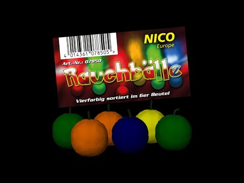 Vierfarbig sortiert im 6er-Beutel, Durchmesser ca. 2,5 cm. Farb-Rauchbälle erzeugen nach dem Anzünden an der Zündschnur einen dichten, farbigen Rauch.