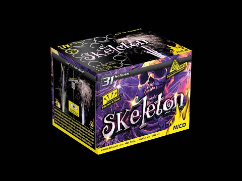 KELETON – Das Feuerwerk der Unterwelt erhebt sich! Wenn die Dunkelheit spricht und die Nacht zum Leben erwacht, erhebt sich SKELETON – eine 31-Schuss Fächerbatterie, die den Himmel in eine Bühne für die Mächte der Unterwelt verwandelt.