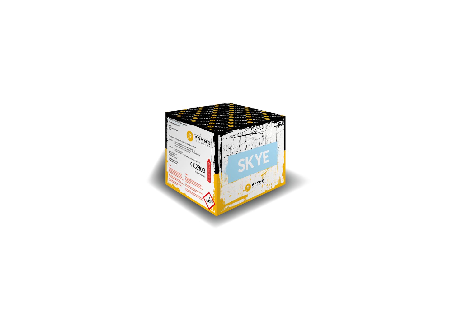 Kompakte Feuerwerksbatterie mit 35 Schuss und einem Kaliber von 25–30 mm. Die Skye zeigt eine gefächerte Abschussfolge mit klaren Farbkontrasten und kräftigen Effekten. Zu den visuellen Highlights zählen goldene Brocade-Kronen, farbige Sterne und glitzernde Blinkeffekte. Mit einer Brenndauer von etwa 35 Sekunden und einer Steighöhe von rund 45 Metern bietet sie eine ausgewogene Kombination aus Dynamik und Farbvielfalt für mittlere bis große Feuerwerksbilder.