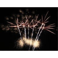 Diese megafette Fächerbatterie mit zweistufigem Salveneffekt und 36 Schuss ist wirklich der Wahnsinn, also haltet euren Puls im Blick! 6 weit aufgefächerte 6er-Salven mit silbernen Knatterstern-Feuertopf-Wänden in der unteren Ebene und anschließendem silbernen Aufstieg zu riesigen, hellen Knatterstern-Buketts mit satter Zerlegung und roten, grünen oder lilanen Schweifstern-Fächern füllen den Himmel komplett aus. Nur das Grinsen beim Anschauen ist noch größer!